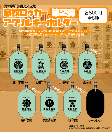 関ケ原駅前観光交流館10周年記念イベントより発売した家紋ロッカーキーホルダーの第2弾が登場です!